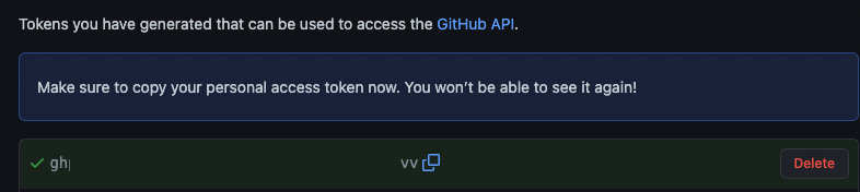 생성된 토큰은 이후 다시 확인 불가하니 복사하여 따로 저장해두어야 한다.