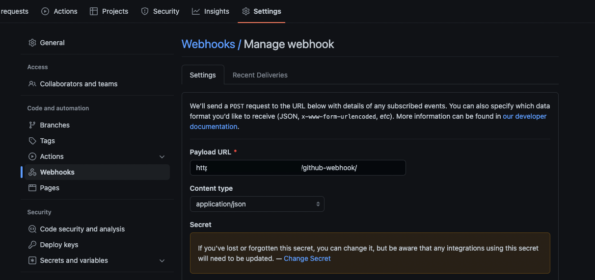 우선 git Repo 에서 Settings - Webhooks - Add webhook